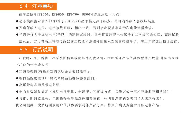 EP9700不僅具有動態模擬圖、柜內溫濕度數字顯示及可編程控制、語音防誤提示、帶電顯示及閉鎖、操控轉換開關(包括儲能開關、遠方/就地轉換開關、分合閘轉換開關)、RS485數字通訊等功能,其還集成了多功能電能表的全部功能,可同時測量顯示多種電力參數:三相電壓、三相電流、有功功率、無功功率、功率因數、頻率,并計量有功電能和無功電能。EP9800除了具有EP9700所有功能外, 另可與位置無線測溫傳感器或遠紅外有線測溫傳感器配合使用, 可在線測量母排、斷路器觸頭、電纜搭接頭等多處實時溫度。